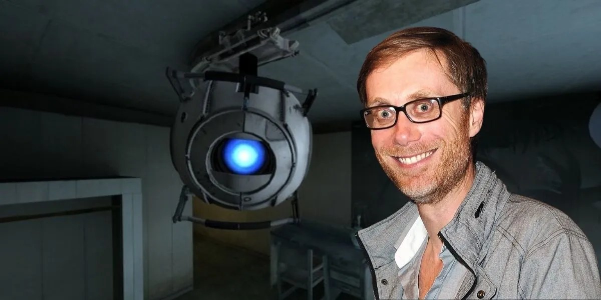 He is voiced by british comedian and writer stephen merchant, and created in part by portal 2's designer erik wolpaw.